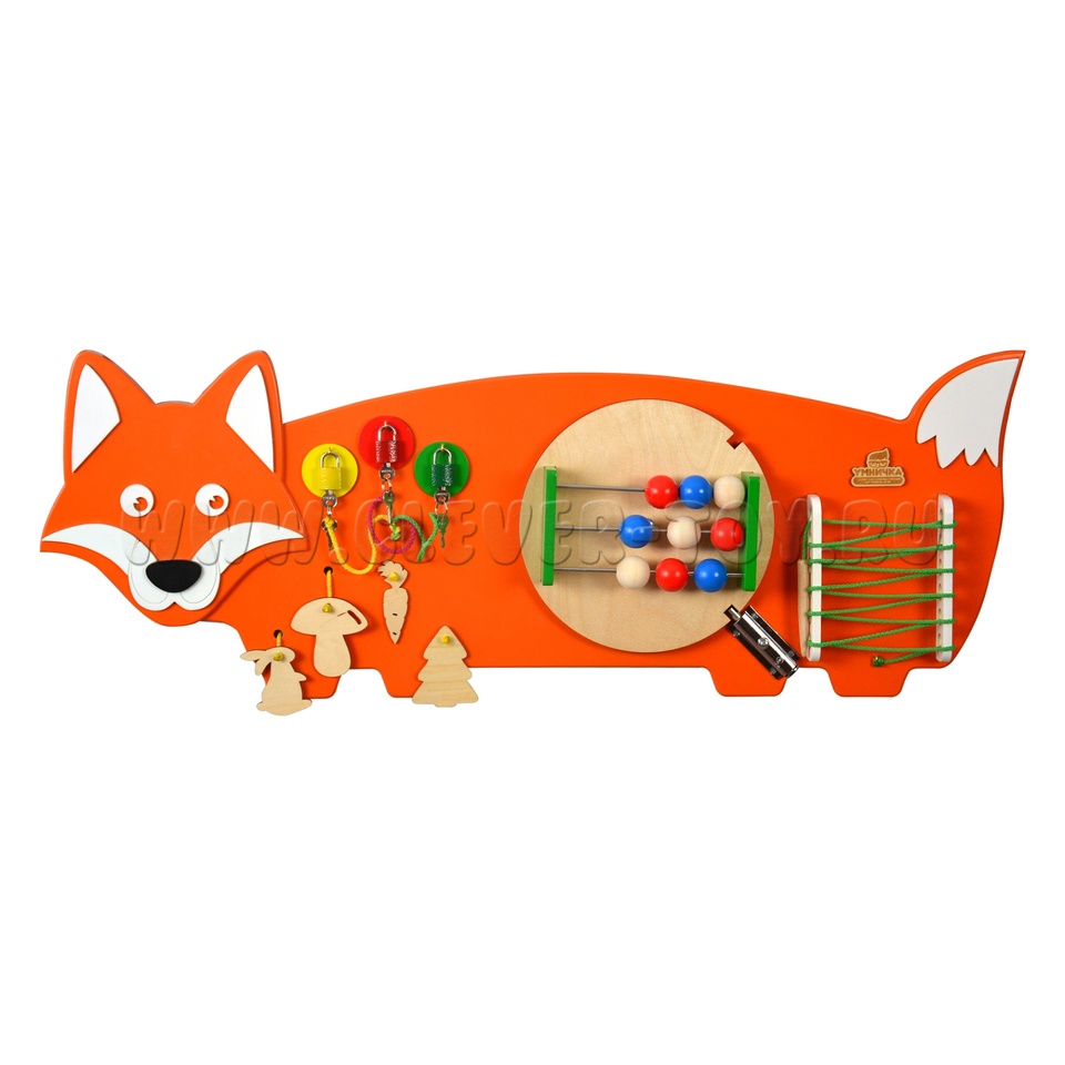 Этот увлекательная бизиборд станет хорошим компаньоном для ваших детей. Игрушка обладает большим размером и подойдет для игры нескольких малышей. Бизиборд имеет яркий и интересный дизайн, но не он помогает Лисичке заинтересовать малышей.