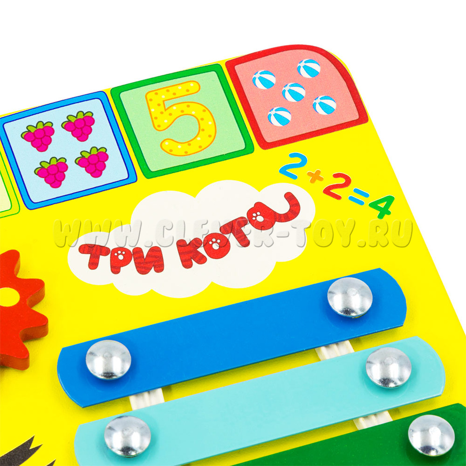 Красочный и позитивный бизиборд "Учим цифры" (лицензионный бренд "ТРИ КОТА"), созданный по методике Монтессори, обучает счету, знакомит с музыкальными звуками, цветами радуги; развивает навыки шнурования, мелкую моторику, воображение, логику и речь. Герои любимого мультфильма обязательно помогут в этом!