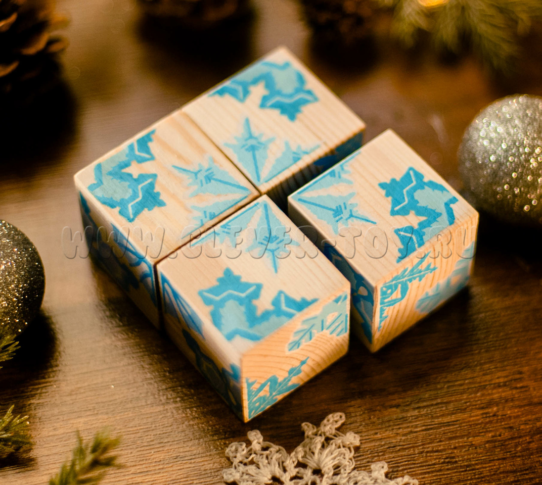 В состав входит четыре кубика, из которых ребенок может собрать различные узоры.