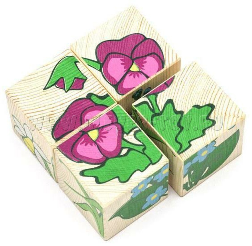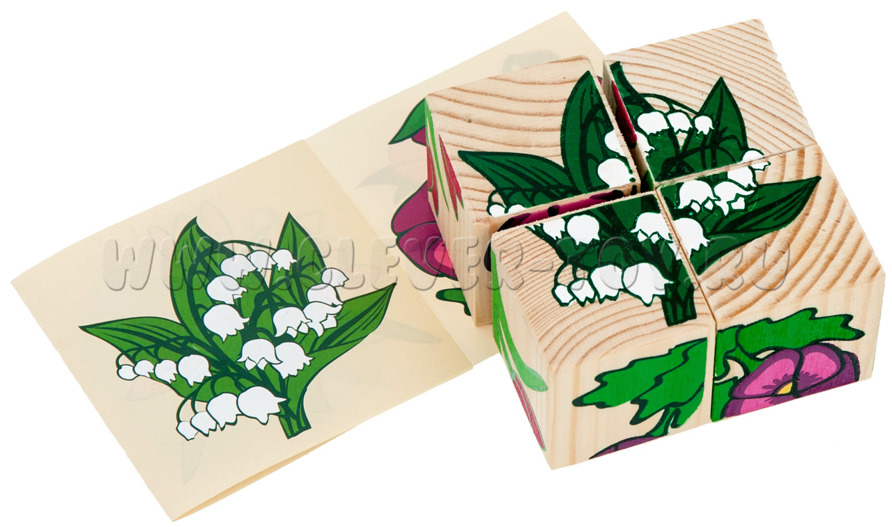 В состав входит 4 кубика, из которых ребенок может собрать 6 картинок мебели.