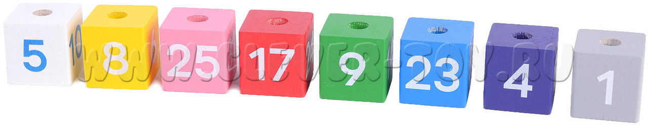 - 8 разноцветных кубиков с цифрами (4 х 4 х 4 см);