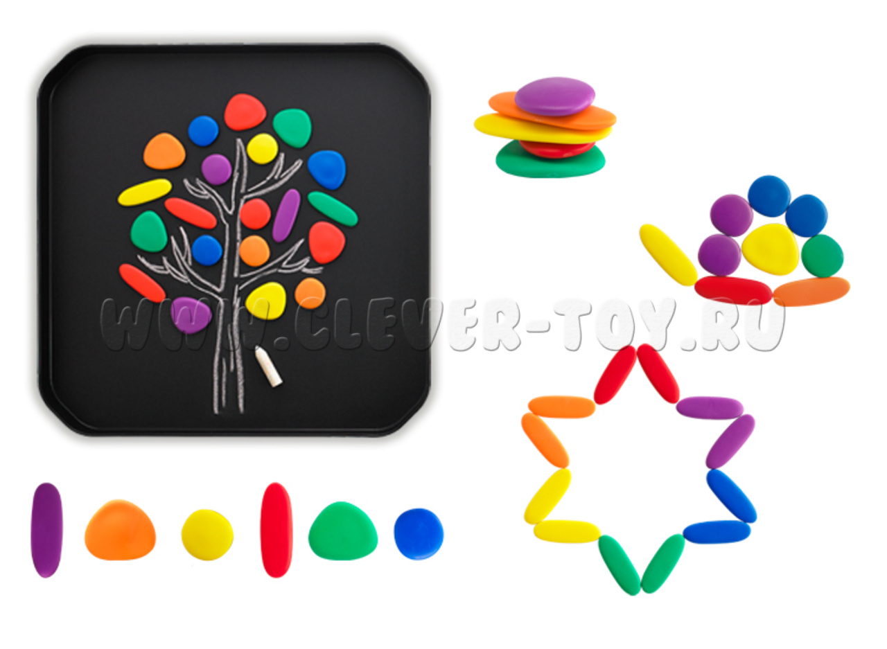 Набор "Радужные камешки" способствует сенсорному, социально-коммуникативному, познавательному, речевому и физическому развитию, оказывает положительное влияние на психику ребенка. Знакомит со счетом, цветом, понятием размера и равновесия. Используется для индивидуальных и групповых занятий.