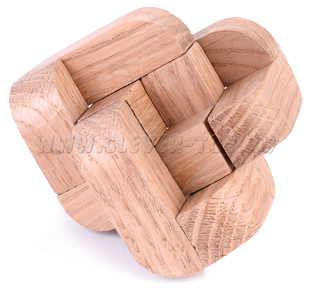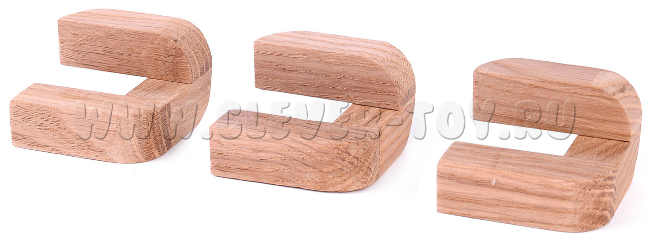 Каждая деталь имеет сцепки с двумя другими деталями. Кажется, что невозможно снять хотя бы одну из деталей, так как все они между собой соединены и взаимозависимы. Однако у этой головоломки есть тайный трюк.