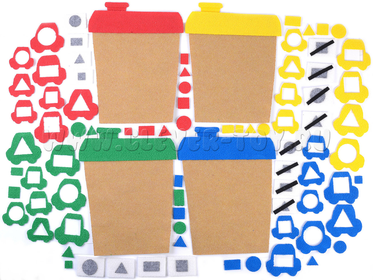 • карточки для геометрических фигур 8 штук, карточки с отрицанием ("не такая, как") 8 штук.