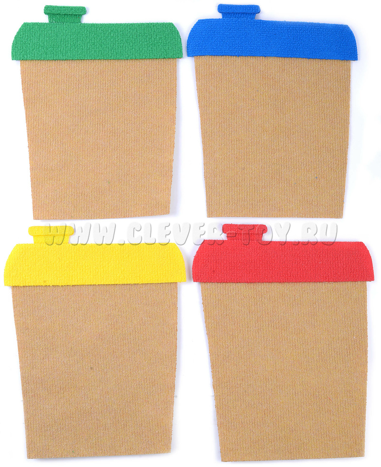 • гаражи для машинок 4 штуки: жёлтый, зелёный, синий, красный;