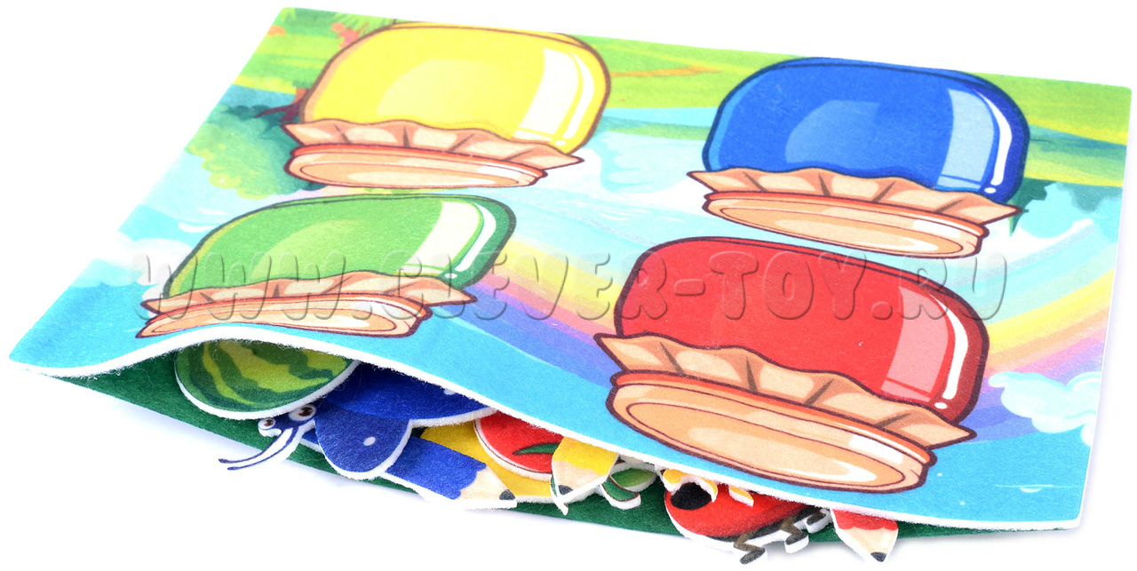 Игра изготовлена из фетра – приятного на ощупь материала, полностью безопасного для детей.