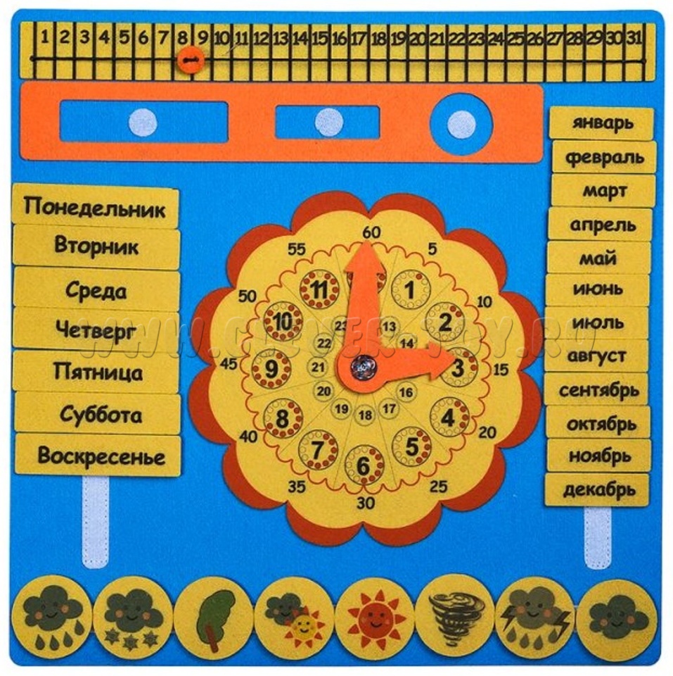 2. Каждый день выставляйте на календаре число и день недели. Наблюдайте погоду на улице и отмечайте ее в календаре с помощью обозначений на кружках.
