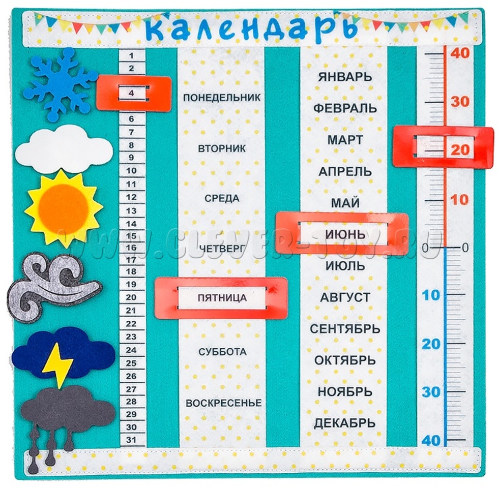 Как играть? Предложите ребенку каждый новый день начинать с календаря. Попросите ребенка назвать, какое сейчас время года, месяц, день недели, какая за окном погода, уточните, какую температуру показывает термометр за окном.