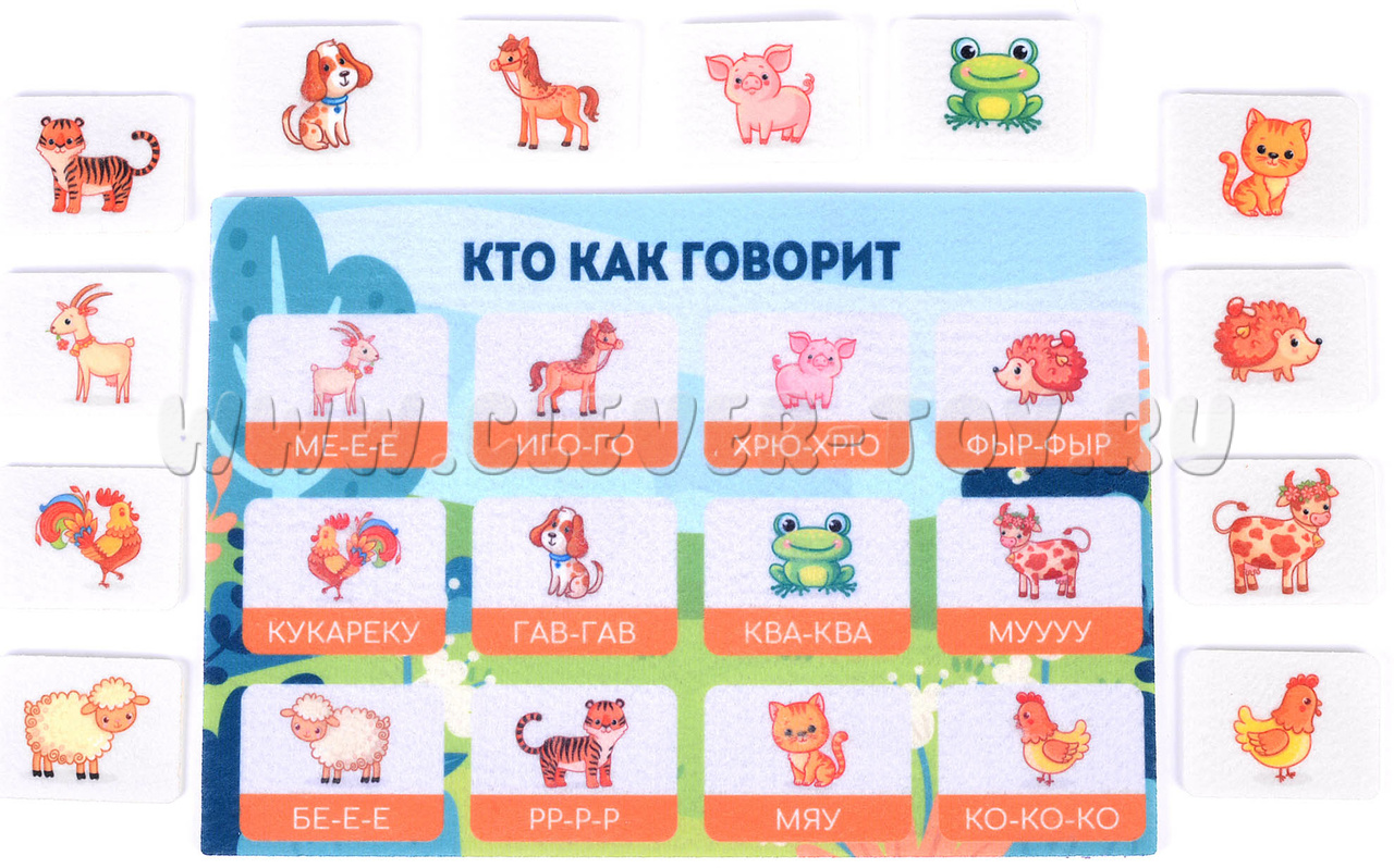 Кто рычит, кто мычит и мяукает? С помощью мягкой аппликации «Кто как говорит» ребенок в игровой форме узнает, какие звуки издают самые разные животные. Регулярно занимаясь с дидактическим пособием, малыш расширит свой кругозор, узнает больше об окружающем мире, а также разовьет свои пальчики и мышление.