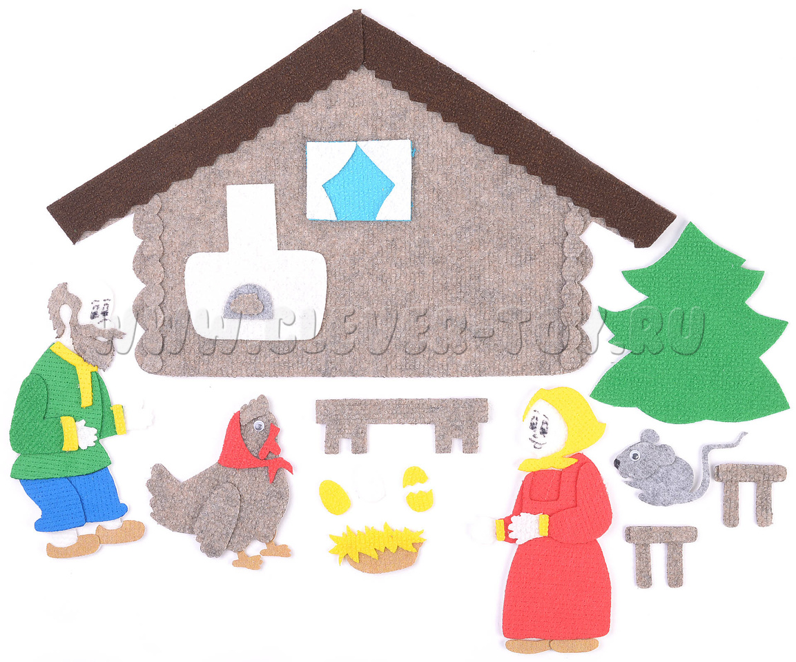 • декорации: изба, ель, яйцо – 2 шт., корзина, табуретка – 2 шт., печь;