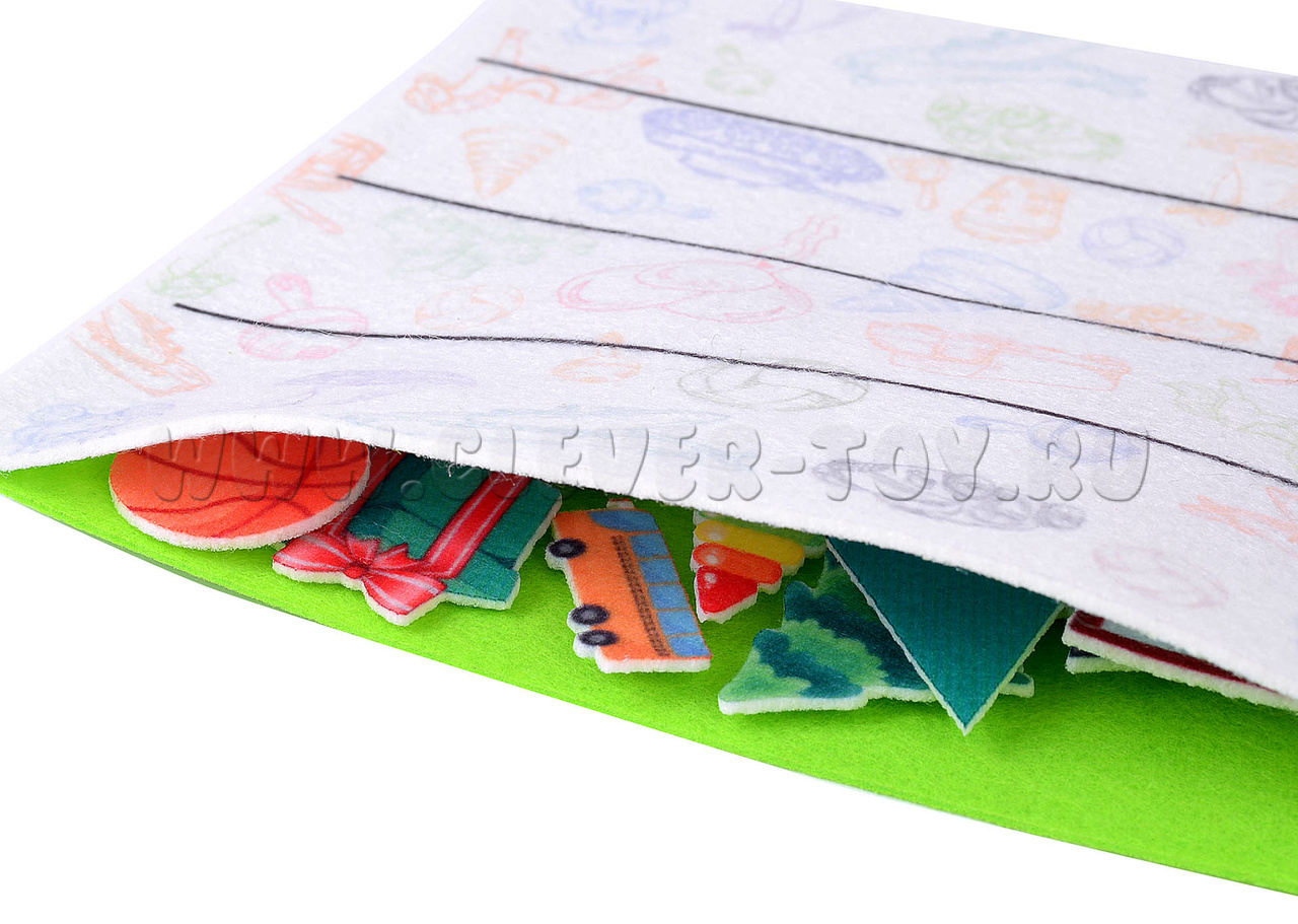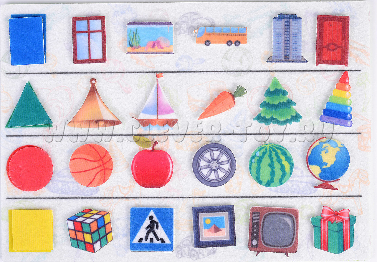 Игровое поле с карманом 20*30см, геометрические фигуры, фигуры предметов разной формы.