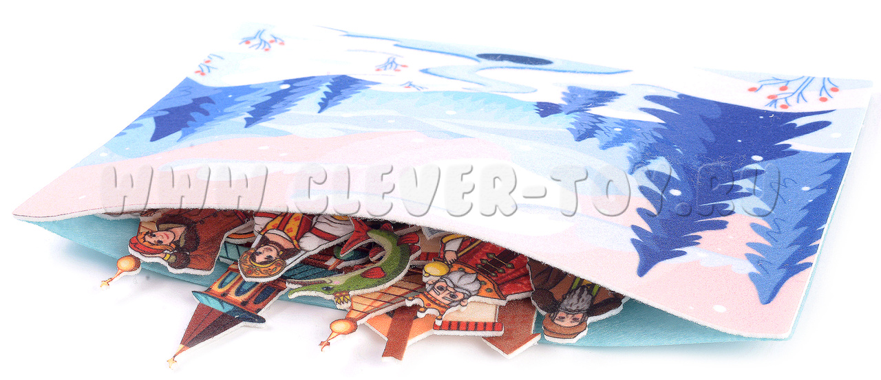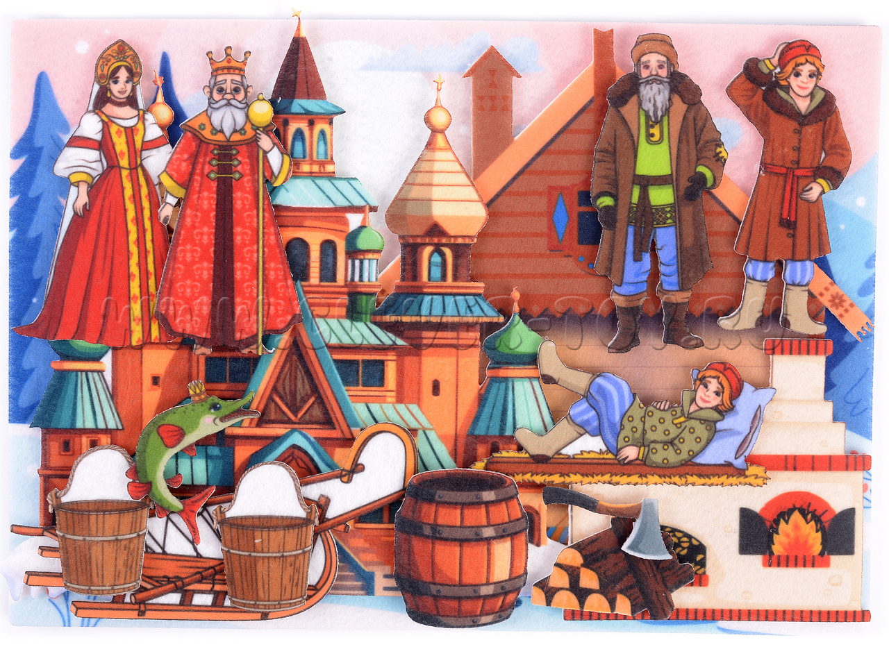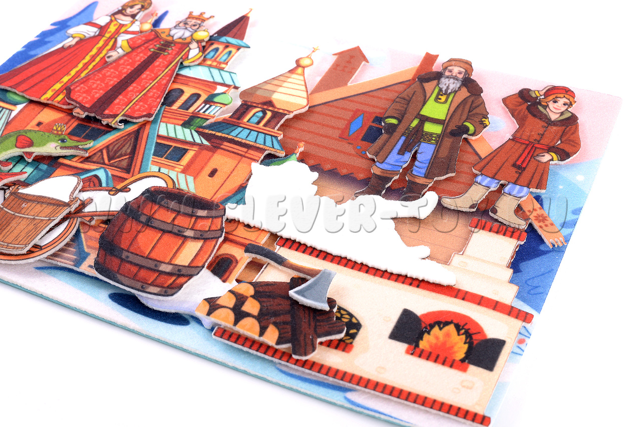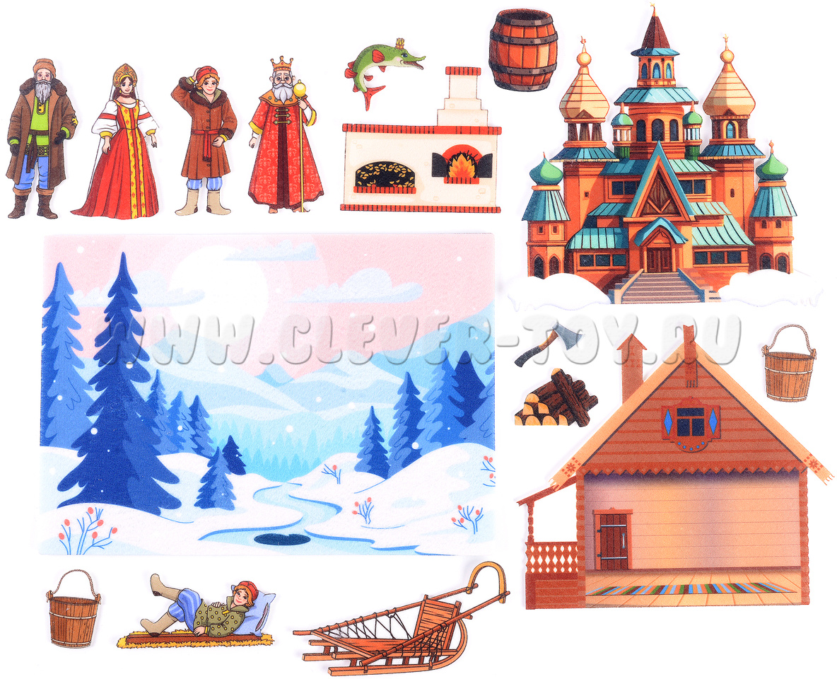 «По щучьему велению» — это игра, которая знакомит детей с русской народной сказкой, развивает их воображение и фантазию. С помощью игры ребёнок также улучшает свою речь.В состав набора входят игровое поле и 18 фигурок.