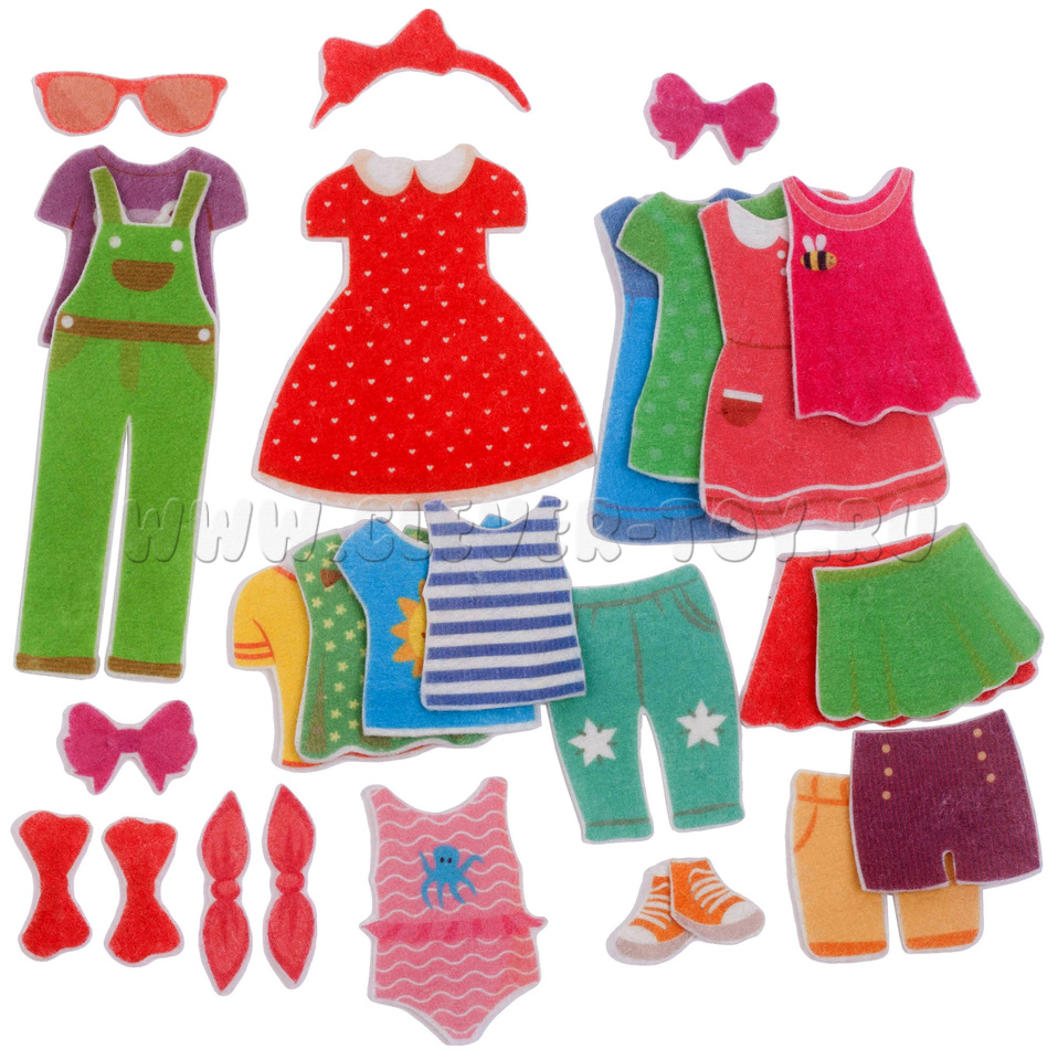 Предметы гардероба легко крепятся на фигурку девочки с помощью липучек. Вся одежда прорисована до мельчайших деталей.