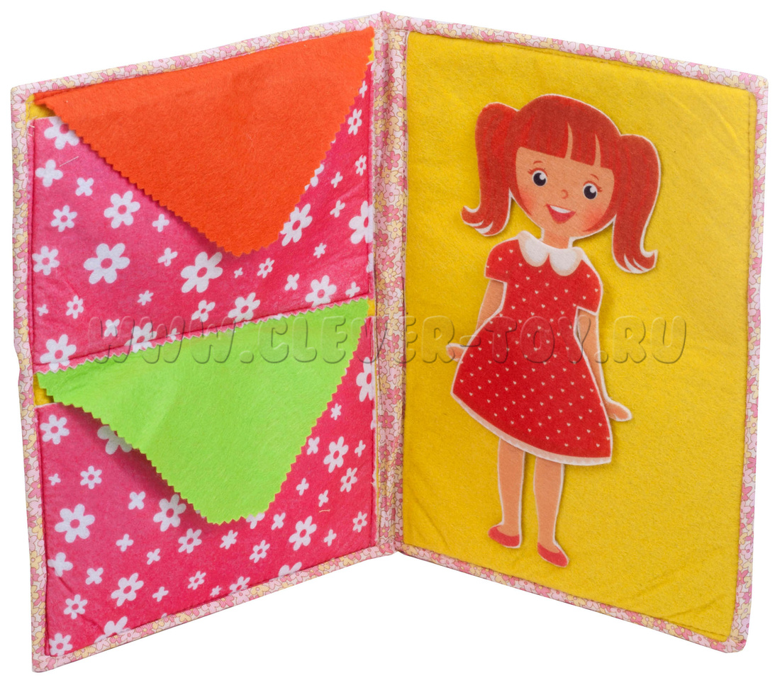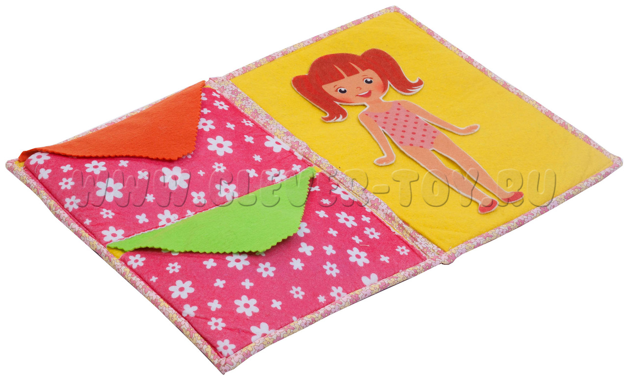 Игра-конструктор для детей старше 3-х лет. Авторская развивающая книга «Одежда для девочки» из ковролина с фигурами на липучках от российской компании «Lip-Lip».