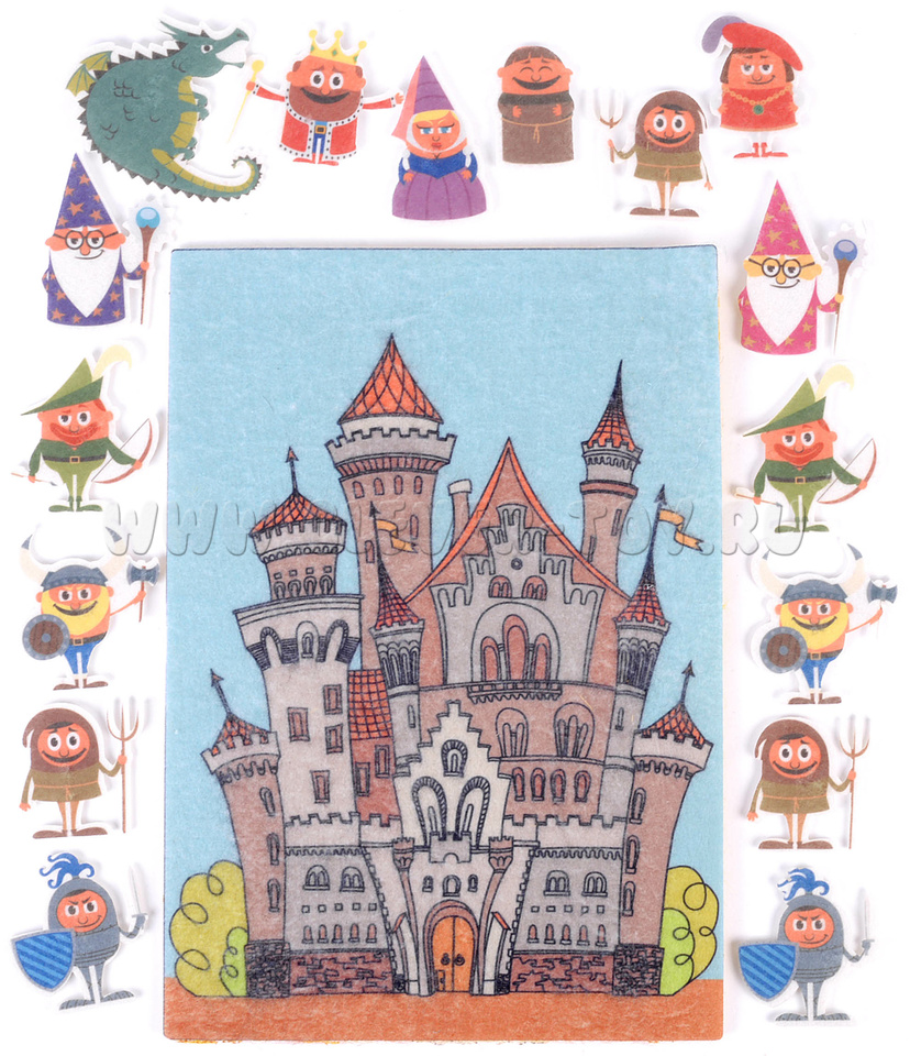 • тематическое игровое поле с изображением большого замка, выполнено в форме конверта, в котором удобно хранить все игровые элементы;