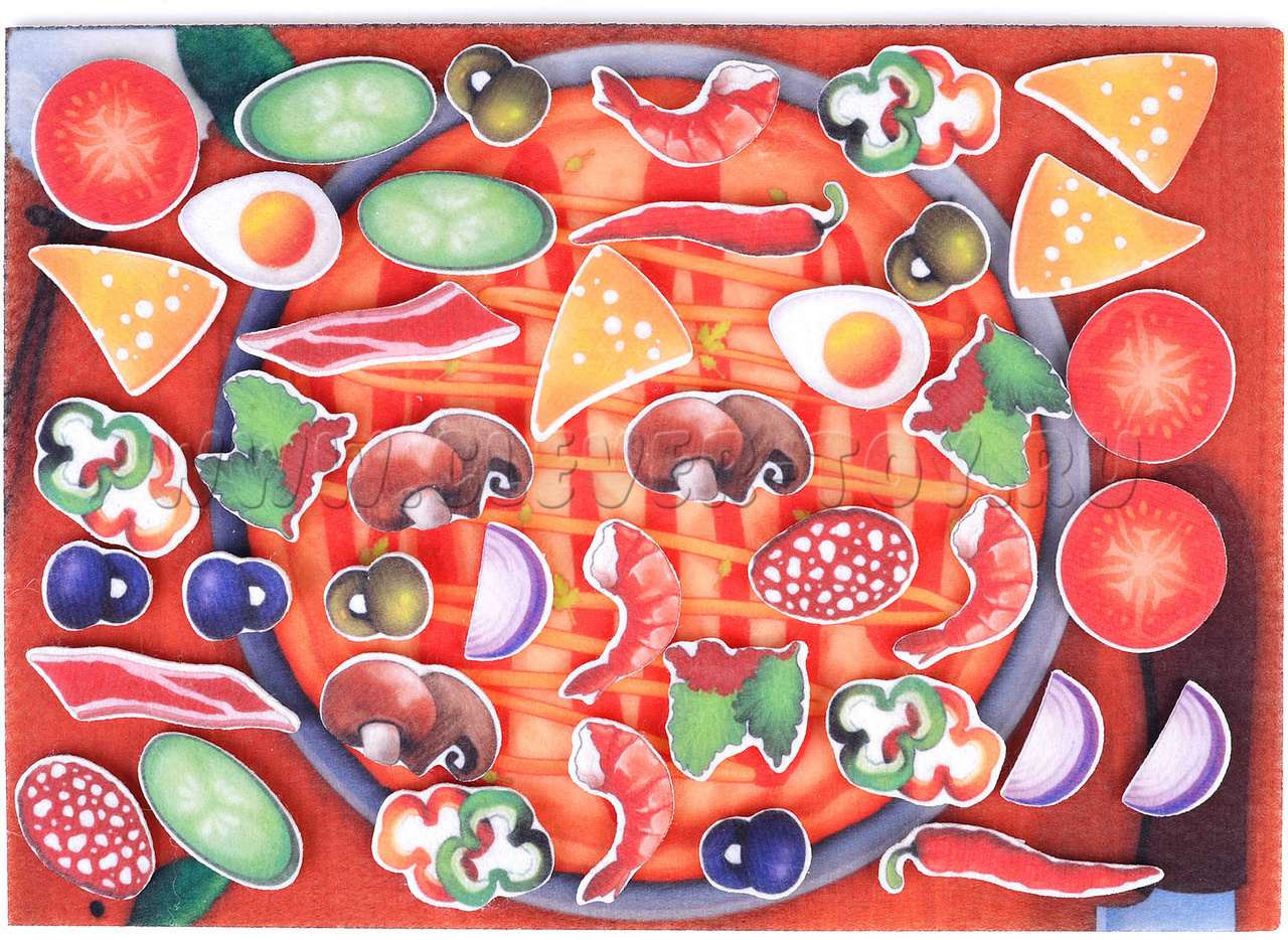 Размер игрового поля: 28х19,5 см Размер ингредиентов: от 2,5 до 6 см