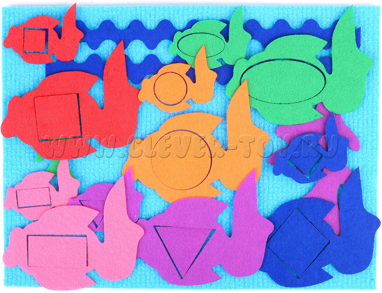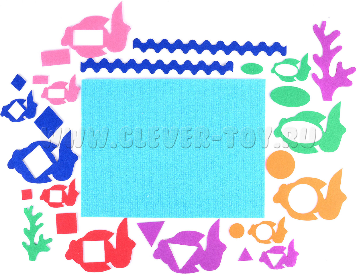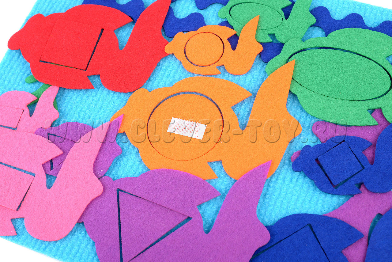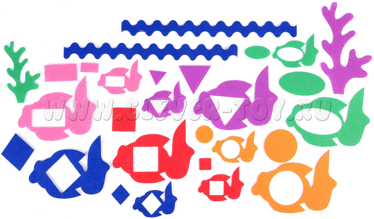 • Фигурки: рыбки, геометрические фигуры, волны и водоросли (28 шт.).