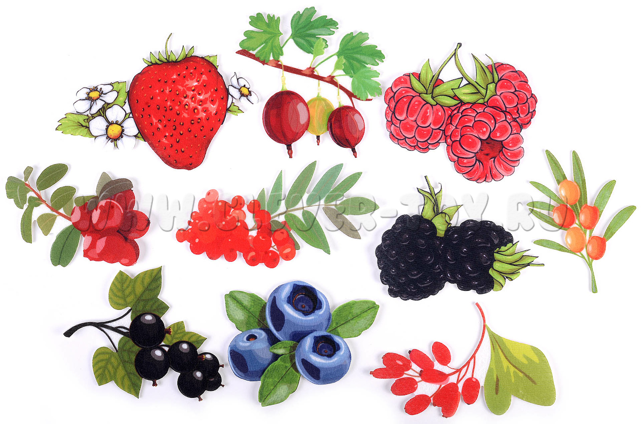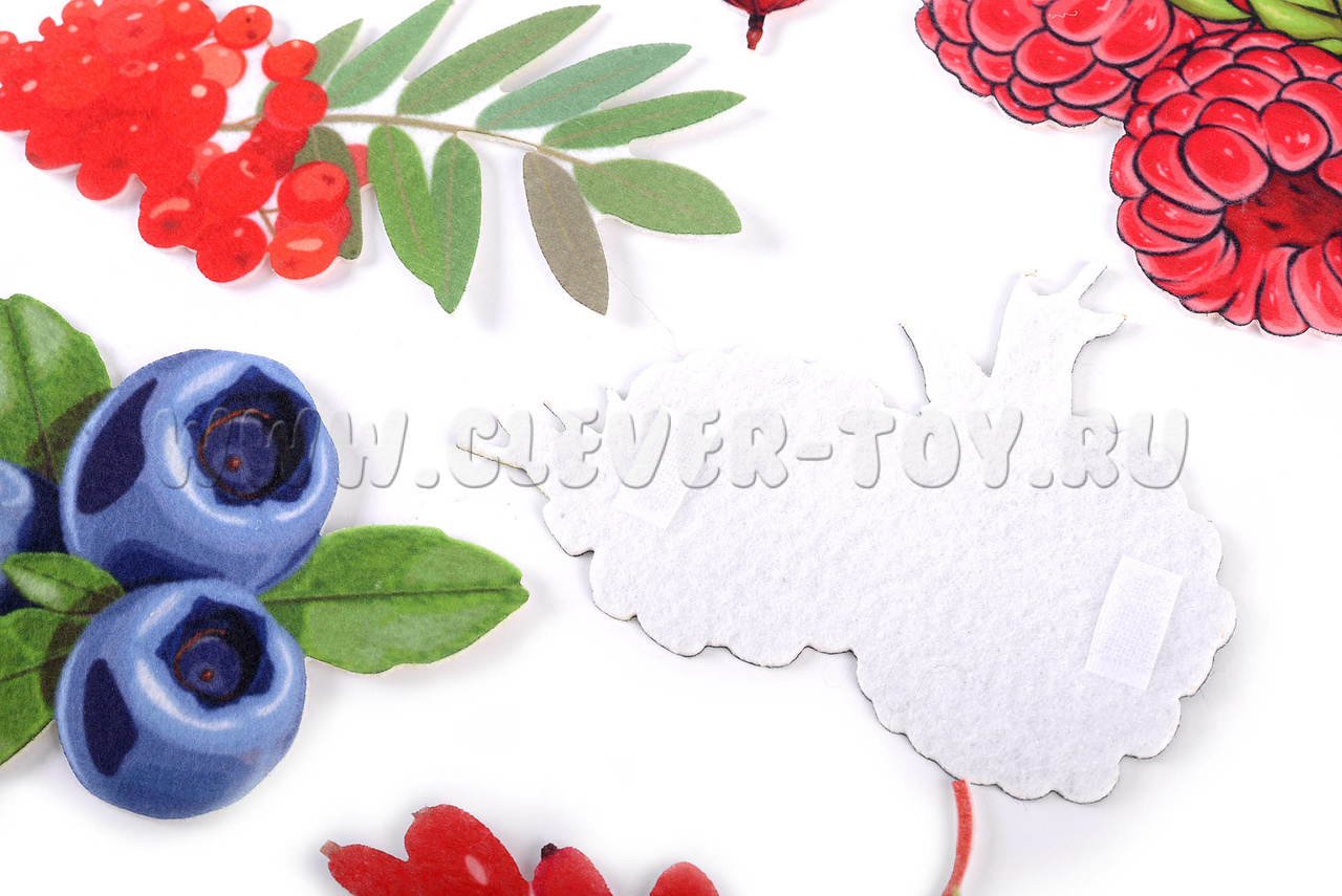В комплекте 10 фигурок с изображениями ягод, на липучках.