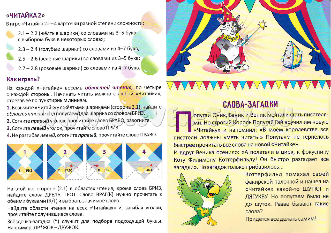 Каждый лист Читайки необходимо вырезать по контуру, уголки согнуть по белым пунктирным линиям.