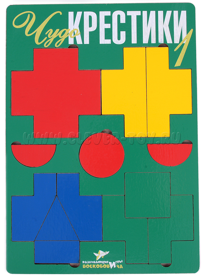 Плоскостной конструктор для раннего развития детей от фирмы «Развивающие игры Воскобовича». «Чудо-крестики» легко превращаются в различные фигуры и оригинальные предметные силуэты: человечки, предметы одежды, самолёты, растения, домики, зверей и т.д. В «Чудо-крестиках» заложены бесконечные возможности для творчества.