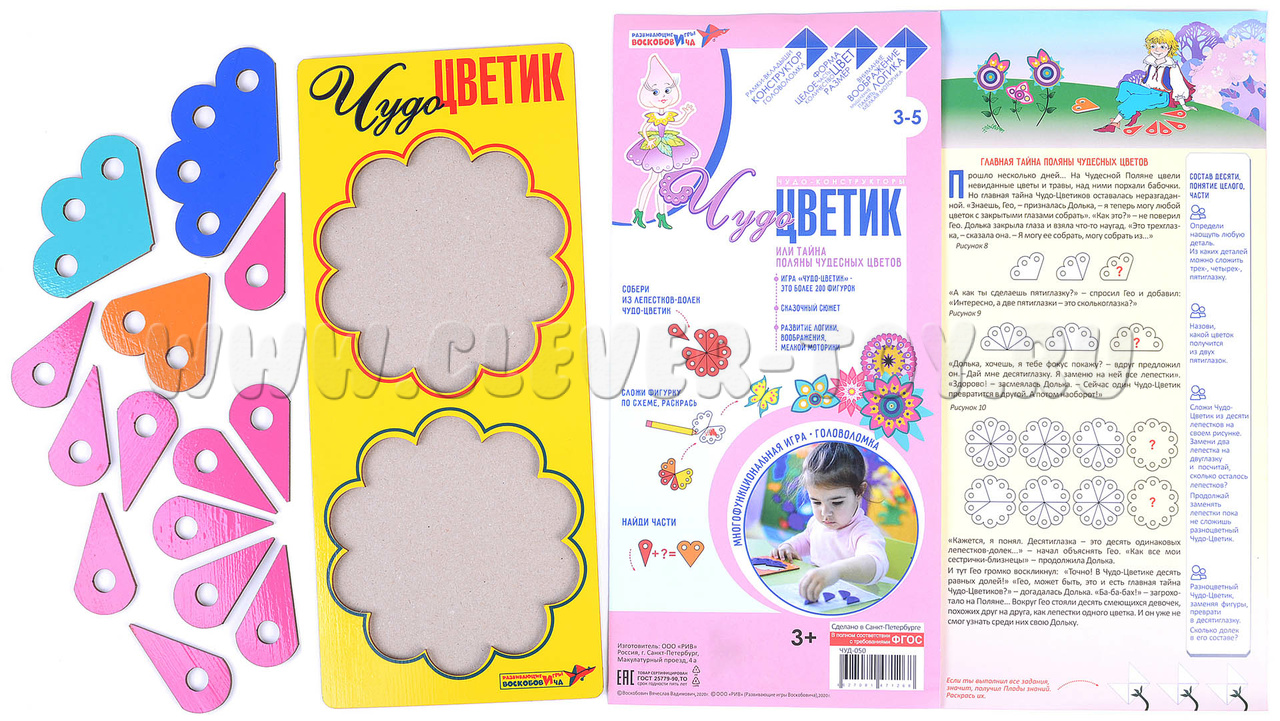 • игровое поле из дерева, куда легко вставляются лепестки Чудо-Цветика;