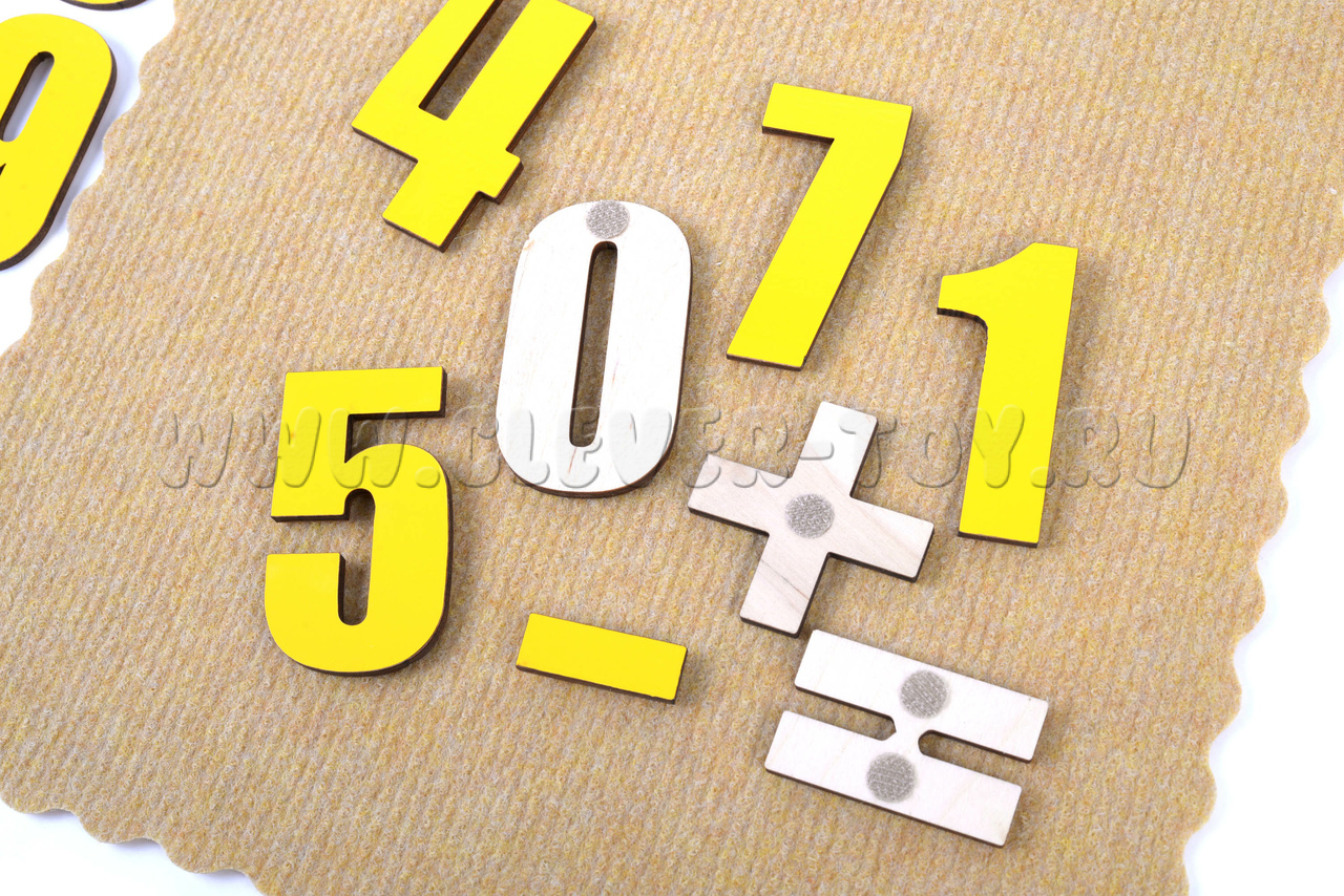 • знаки из фанеры – 10 шт., в том числе «+», «-», «=», «<», «>», знаки перечёркнутого равенства,