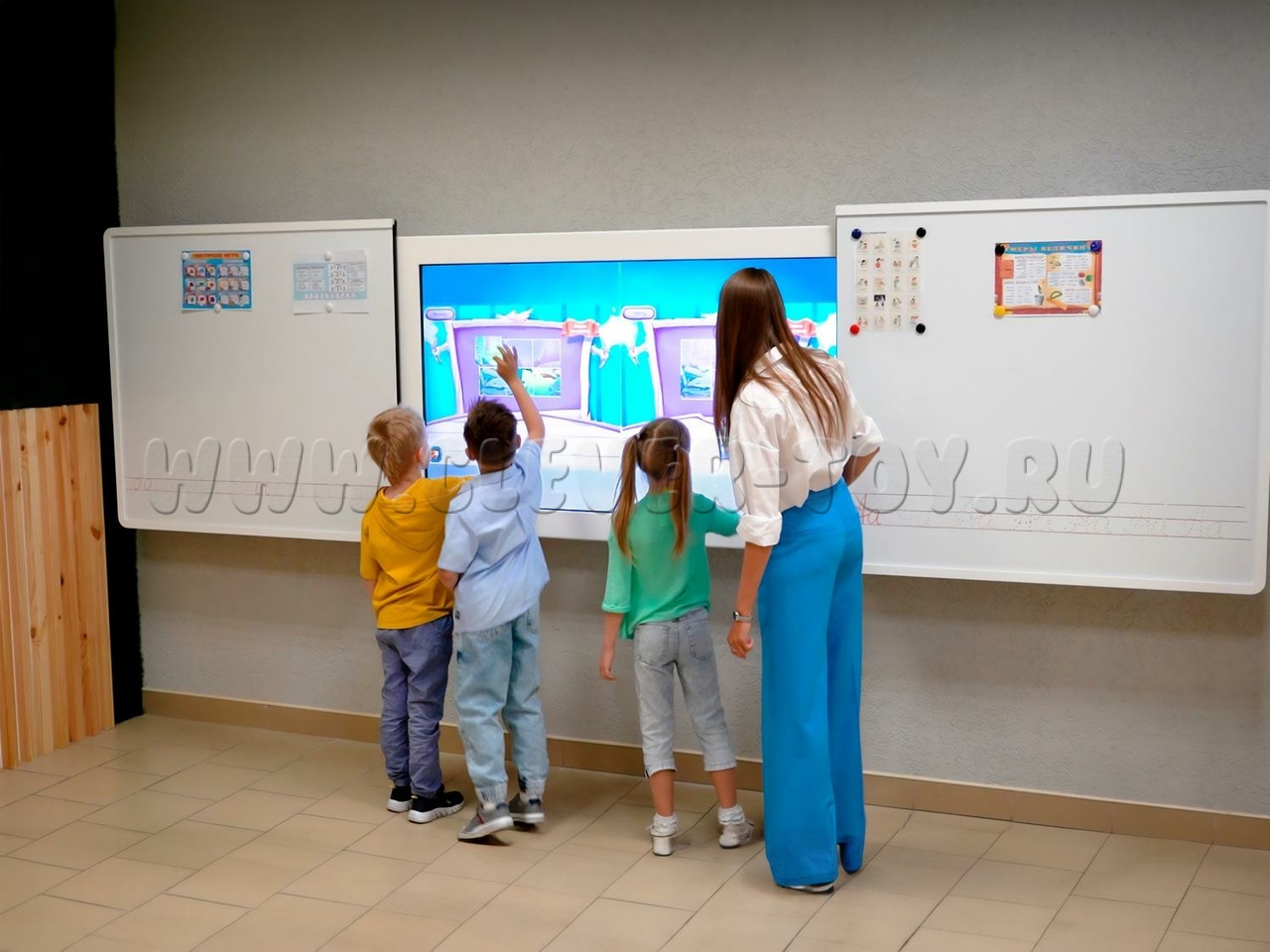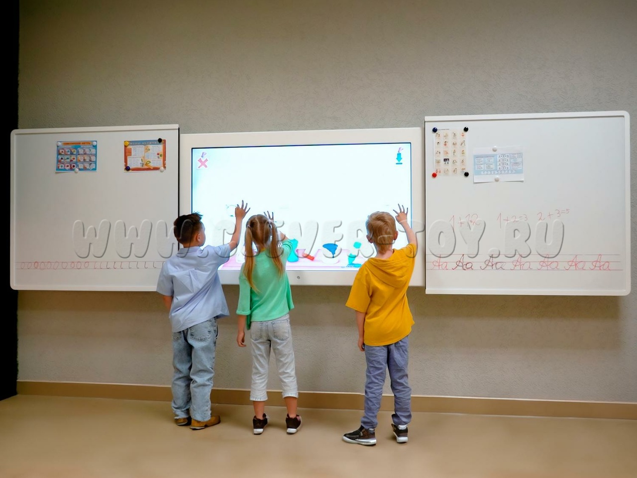 Современная школьная доска, сочетающая пишущую магнитно-маркерную поверхность и интерактивный экран со встроенным компьютером. Раздвижная конструкция доски "Фибоначчи" позволяет трансформировать рабочую зону по желанию преподавателя, и совмещать традиционные занятия от руки с инновационными инструментами в образовании. Подходит для оснащения школ, учреждений культуры, детских кружков, развивающих и коррекционных центров для детей.