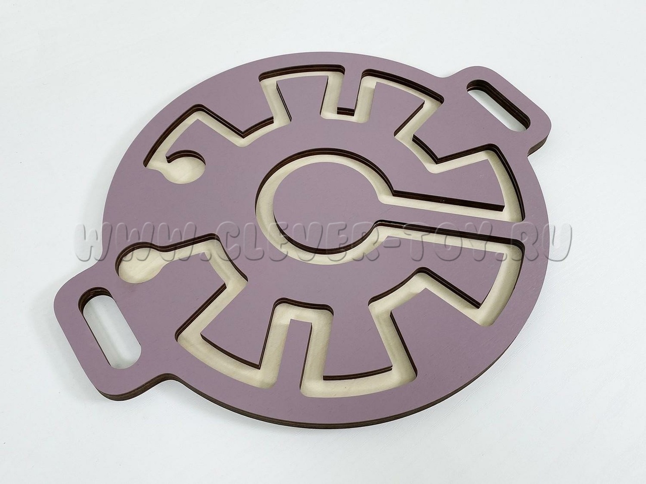Он представляет собой круглую доску с двумя ручками по бокам и лабиринтом. Задача ребёнка — прокатить шарик через лабиринт, используя движения рук. Игра с балансиром развивает крупную моторику, пространственную ориентацию, логическое мышление и улучшает концентрацию внимания и усидчивость.