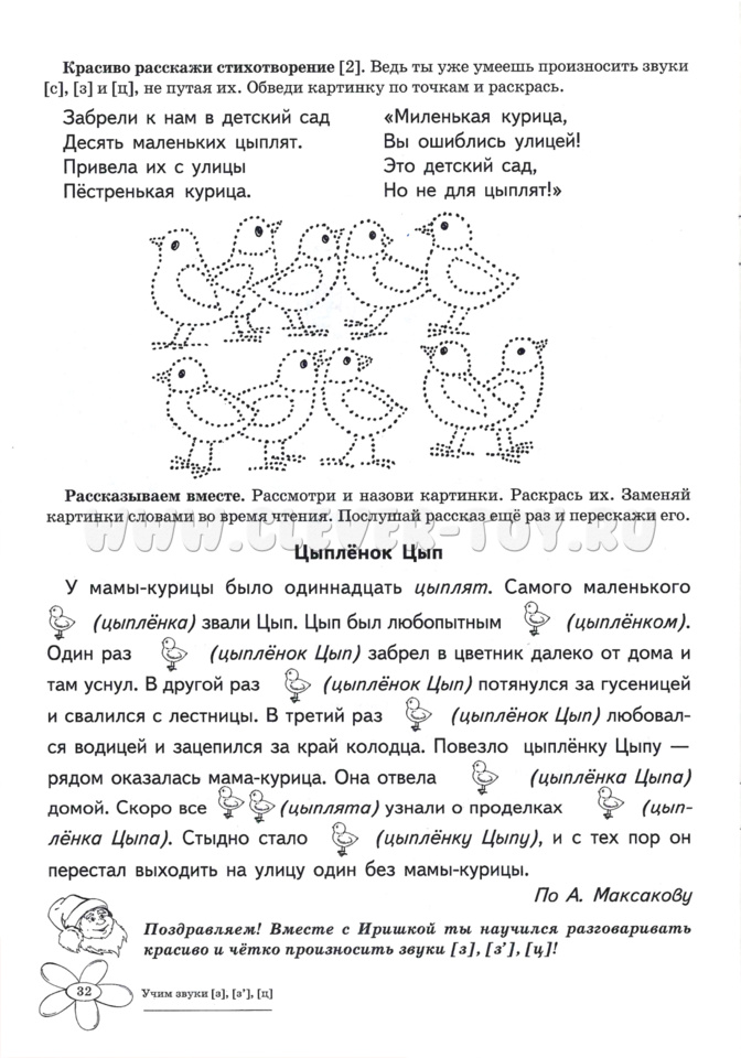 Предложенный комплект домашних игровых тетрадей учитывает принцип "от простого к сложному" и позволяет логопеду поэтапно автоматизировать звуки и дифференцировать звуки [з], [з’], [ц].