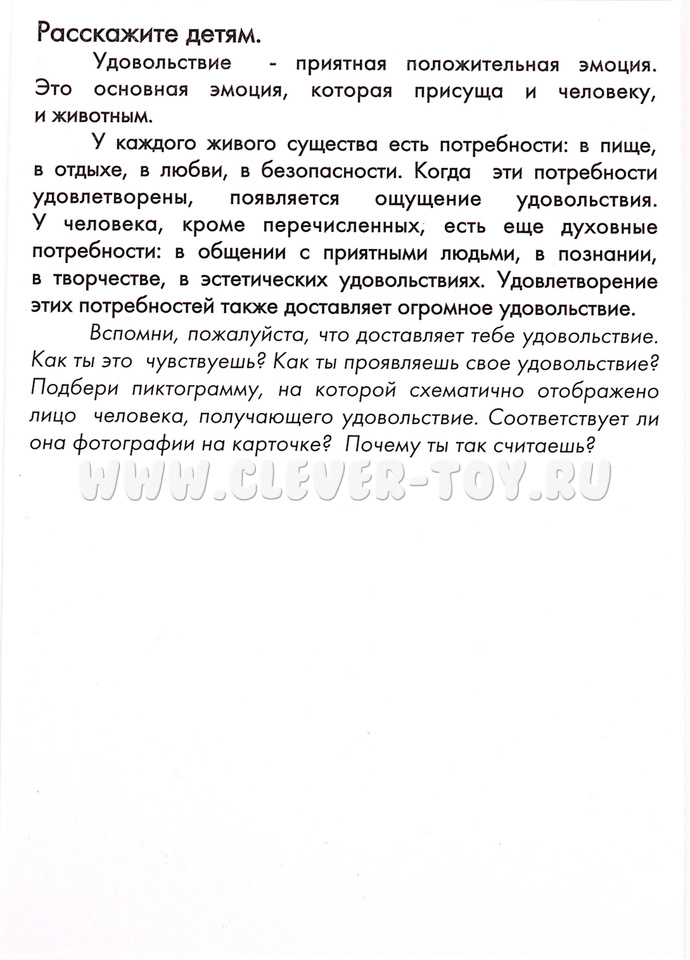 Игра поможет познакомиться с различными эмоциями, которые можно встретить на лицах окружающих, и научиться понимать других людей, и контекст ситуации. Также карточки расскажут интересный факт про каждую из эмоций. Развивающие карточки могут использоваться не только в домашних условиях, но и в дошкольных и школьных учреждениях. Как индивидуально, так и в группе. Игра научит классифицировать, сравнивать и обобщать, а также поможет развить речь и эмоциональный интеллект. Пособие доставит вашему малышу и вам немало приятных минут проведенных вместе за полезным занятием!