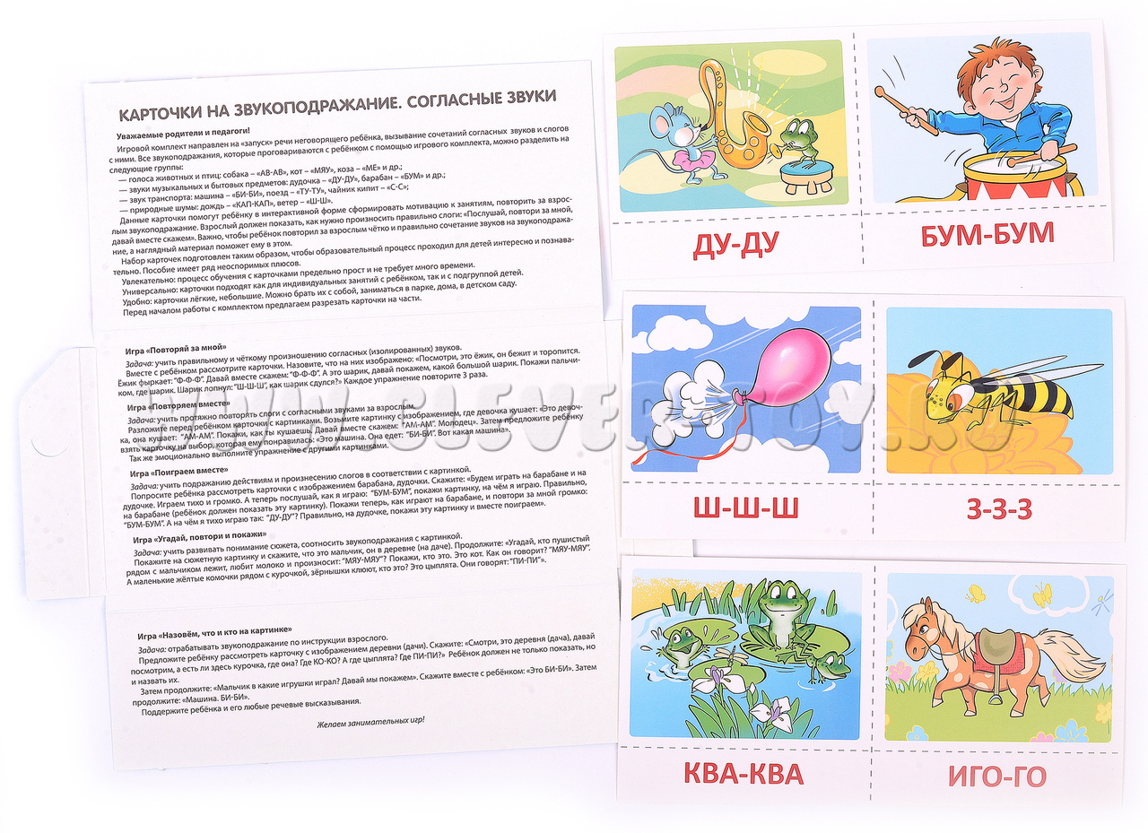 Набор карточек с рисунками. Карточки на звукоподрожание. Согласные звуки