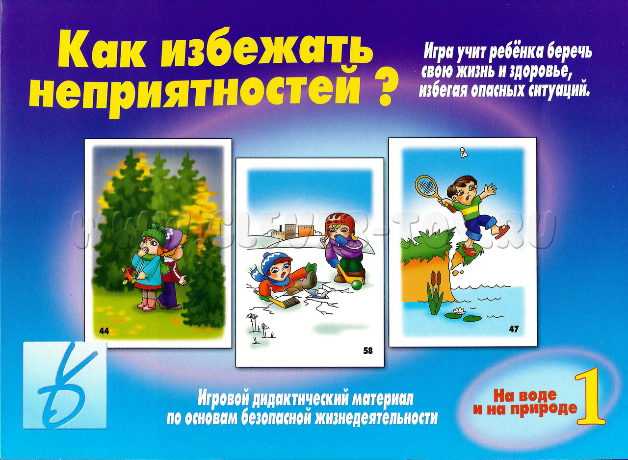 Игровой дидактический материал "Как избежать неприятностей? На воде и на природе" предназначен для детей в возрасте от 5 до 9 лет и нацелен на обучение основам безопасности жизнедеятельности. Материал содержит яркие картинки-иллюстрации ситуаций, которые могут возникнуть во время активных игр на воде и на природе, а также стихи для легкого запоминания правил.