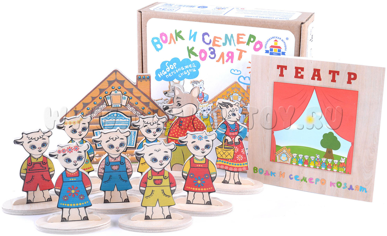Набор деревянный "Персонажи сказки Волк и семеро козлят"