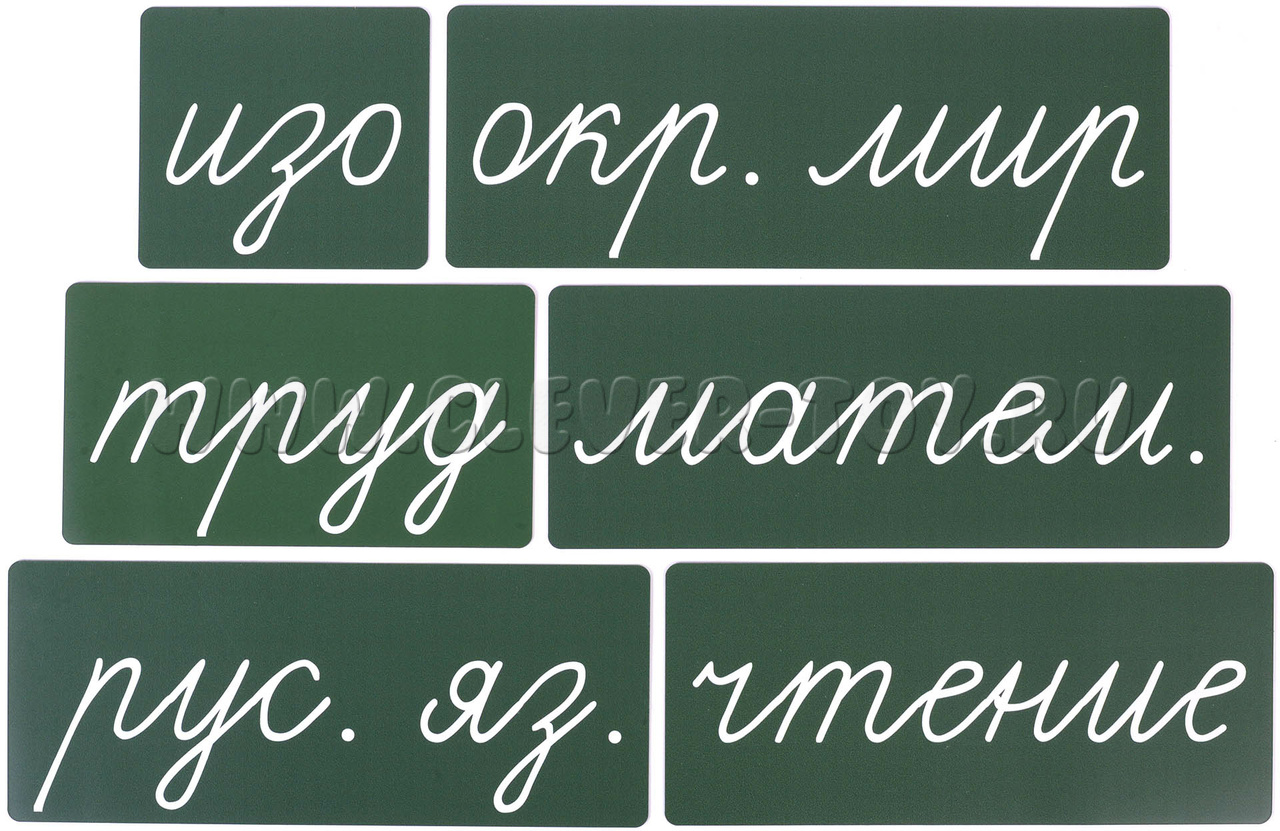 Набор магнитных карточек "Домашнее задание: предметы" №2 (фон зелёный)