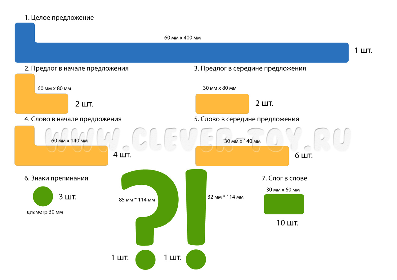 Набор магнитных карточек для разбора предложения (большой размер)