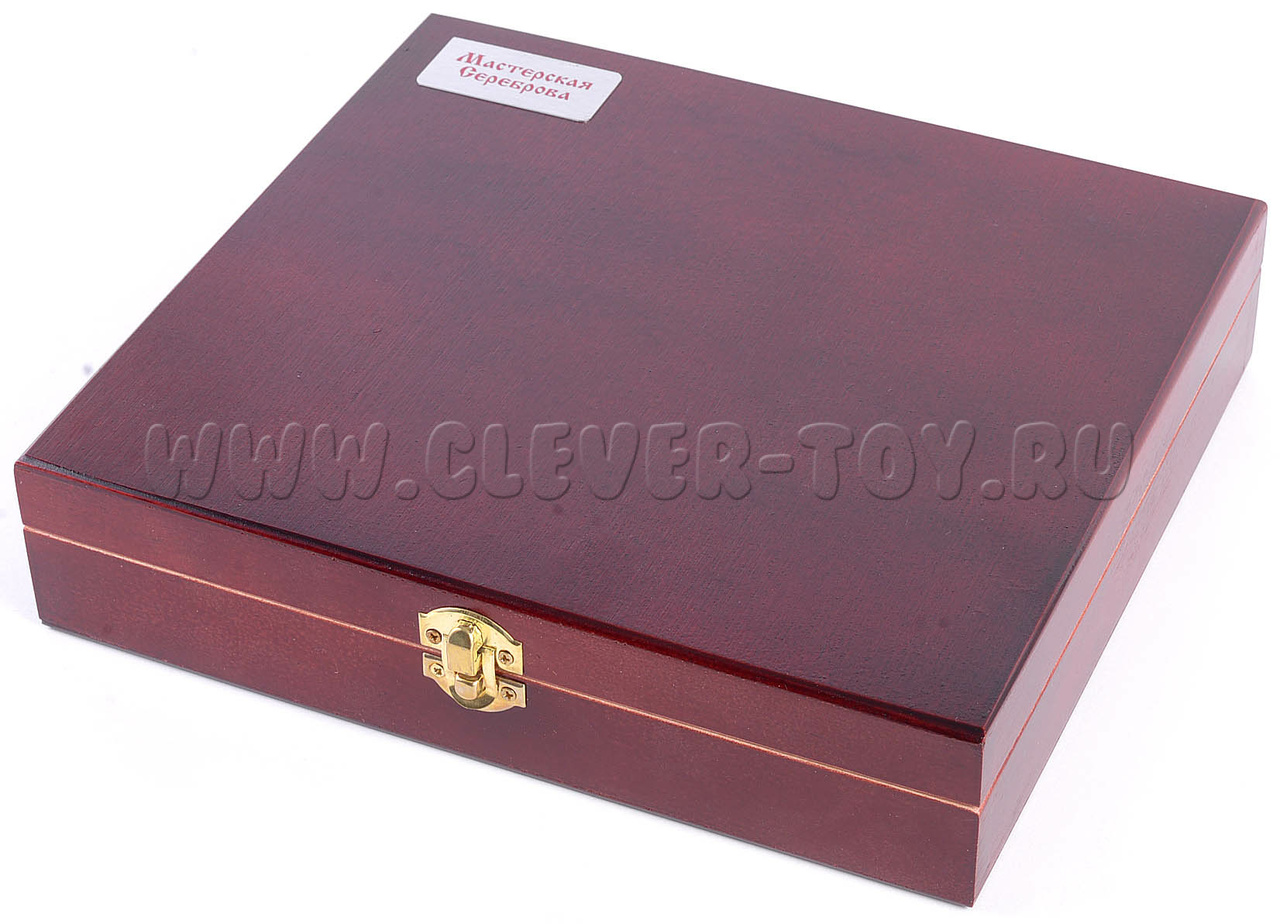 Треугольник выполнен из стали диаметром 8мм, длина стороны - 12см. Гальваническое покрытие не ухудшает качество звука и не разрушается при механическом воздействии. Треугольник закреплен на деревянном основании. Ударная палочка из нержавеющей стали. Подарочный кейс с золочеными застежками.