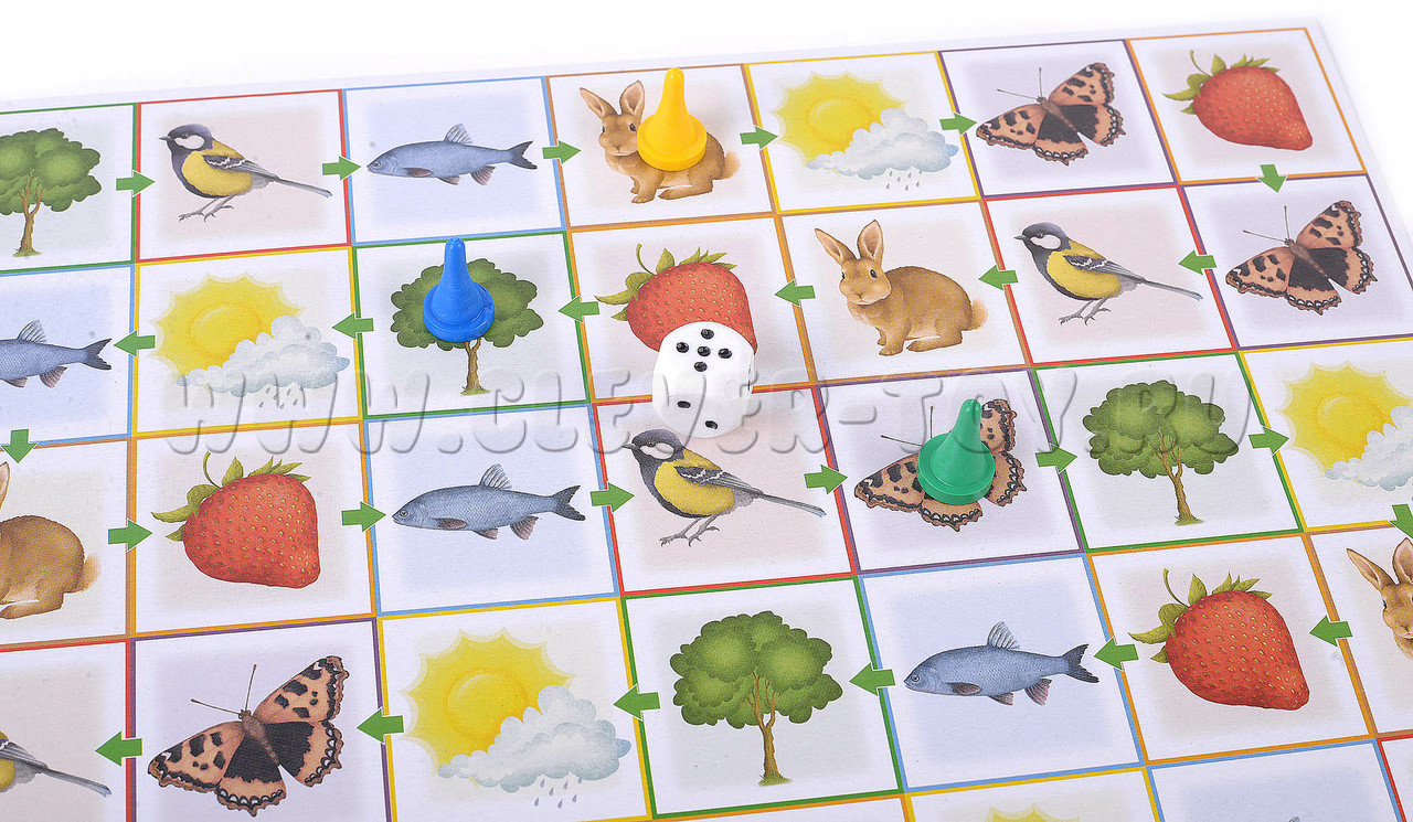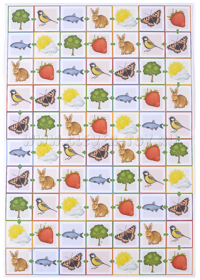 Во 2-м варианте используется игровое поле для развития памяти и внимания, где ребенок ищет определенные категории объектов (все ягоды, все бабочки, все рыбки и т.д.)