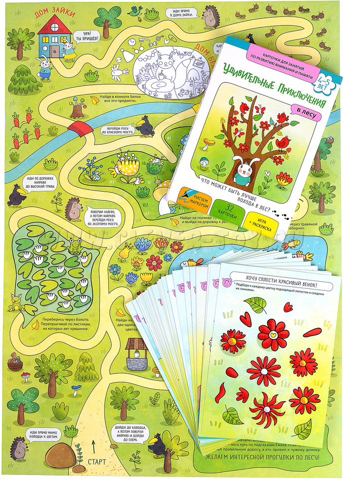 Карточки для занятий по развитию внимания и памяти "Удивительные приключения в лесу"