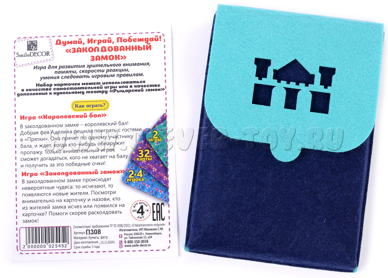 Размер упаковки: 16*11*2 см. Для хранения карточек предусмотрен удобный фетровый конверт на липучке.