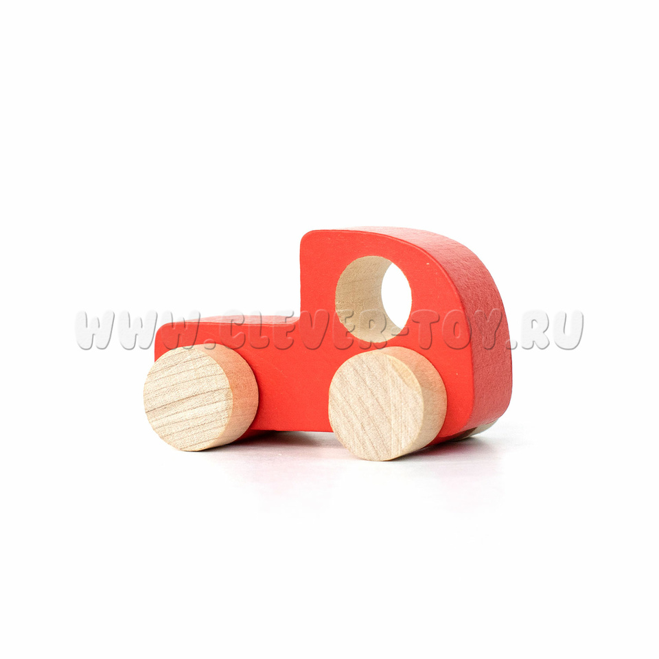 Деревянная машинка-каталка "Томик" красная для самых маленьких ребят, с отверстием для пальчиков.