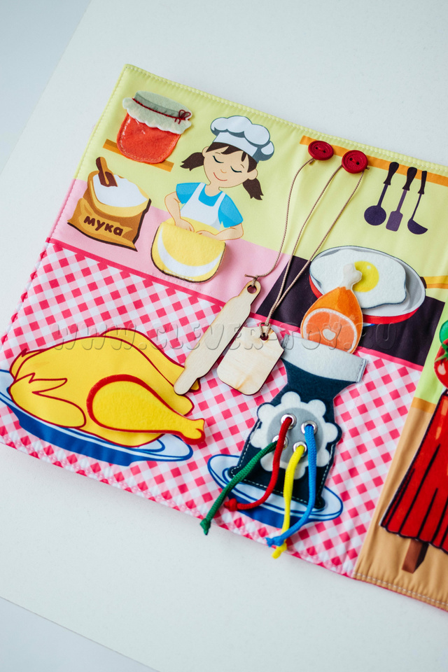 Эта папка познакомит вашего малыша с куклой Машей-поваром. В развёрнутом виде она имитирует кухню.