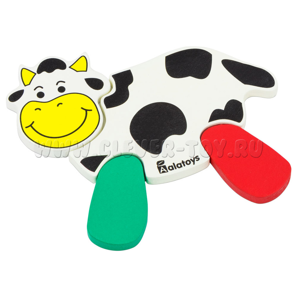 • 4-х разноцветных деталей, из которых складывается фигурка коровки (туловище, 2 ноги, голова).