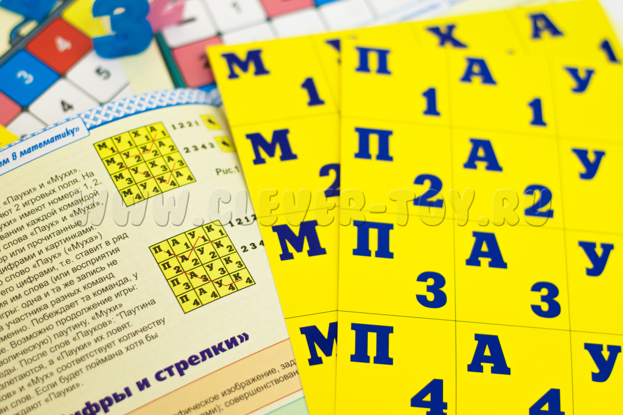 • игра «Паук и Муха» - научит ребёнка зрительно воспринимать слово как узор из букв, кодировать буквы цифрами и записывать ими слова;