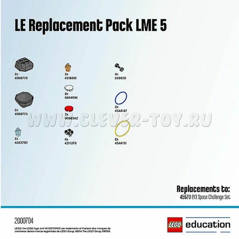 Дополнительный комплект из 24 запасных элементов LEGO к набору LEGO Education Mindstorms EV3 "Космические испытания".