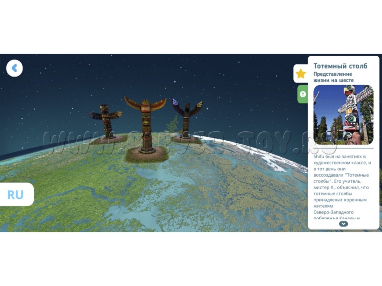 Облетая весь земной шар и сканируя его при помощи умного устройства, дети узнают много новой и полезной информации, познакомятся с разными аспектами жизни во всех уголках земного шара:
